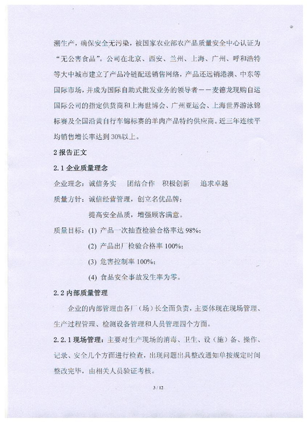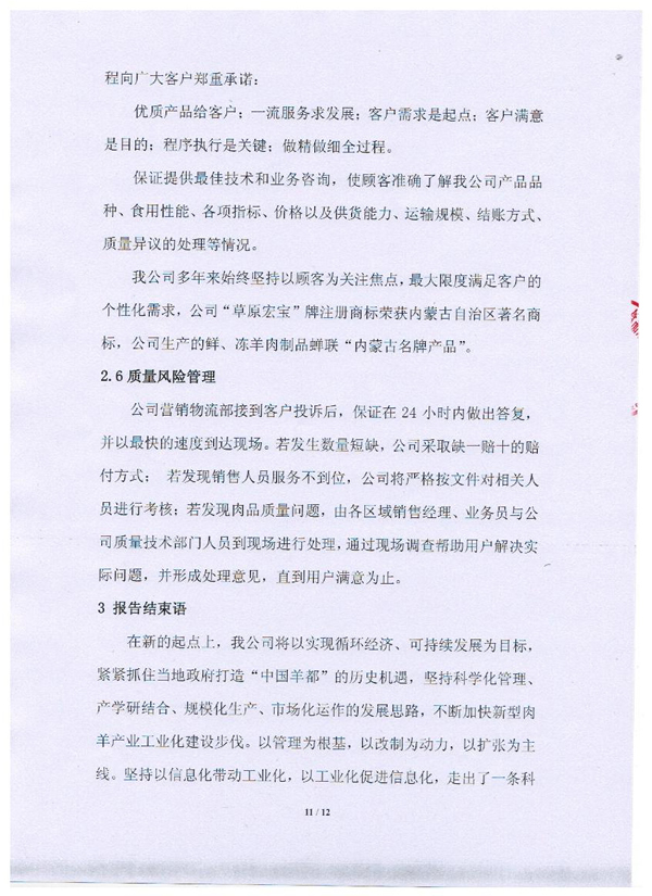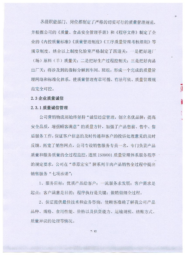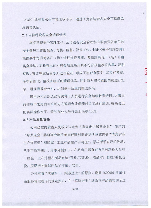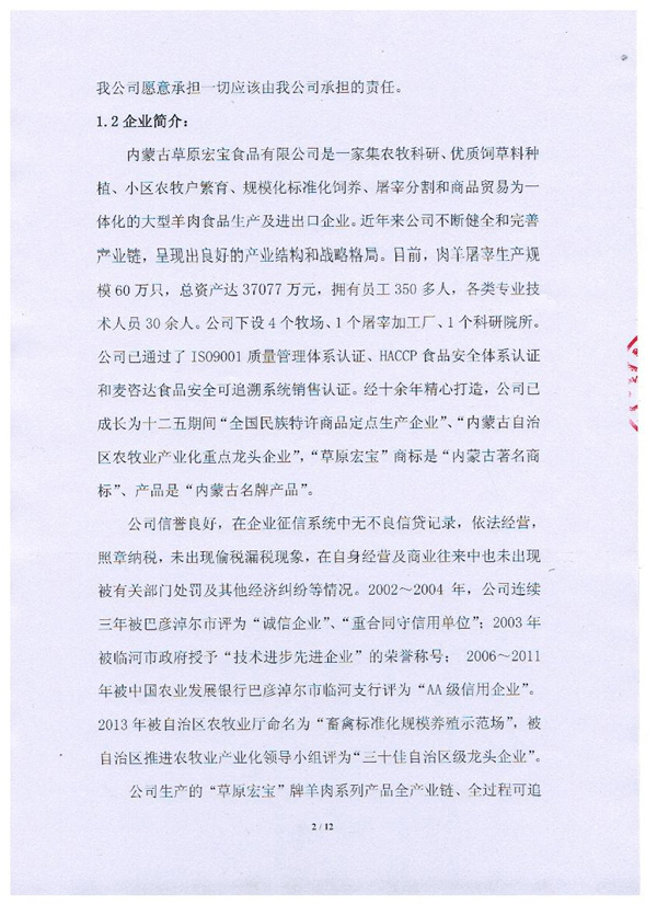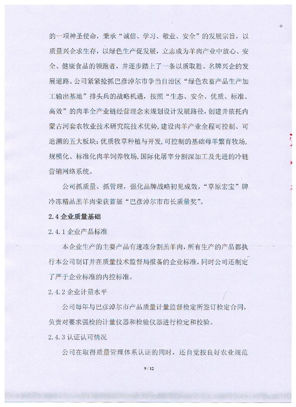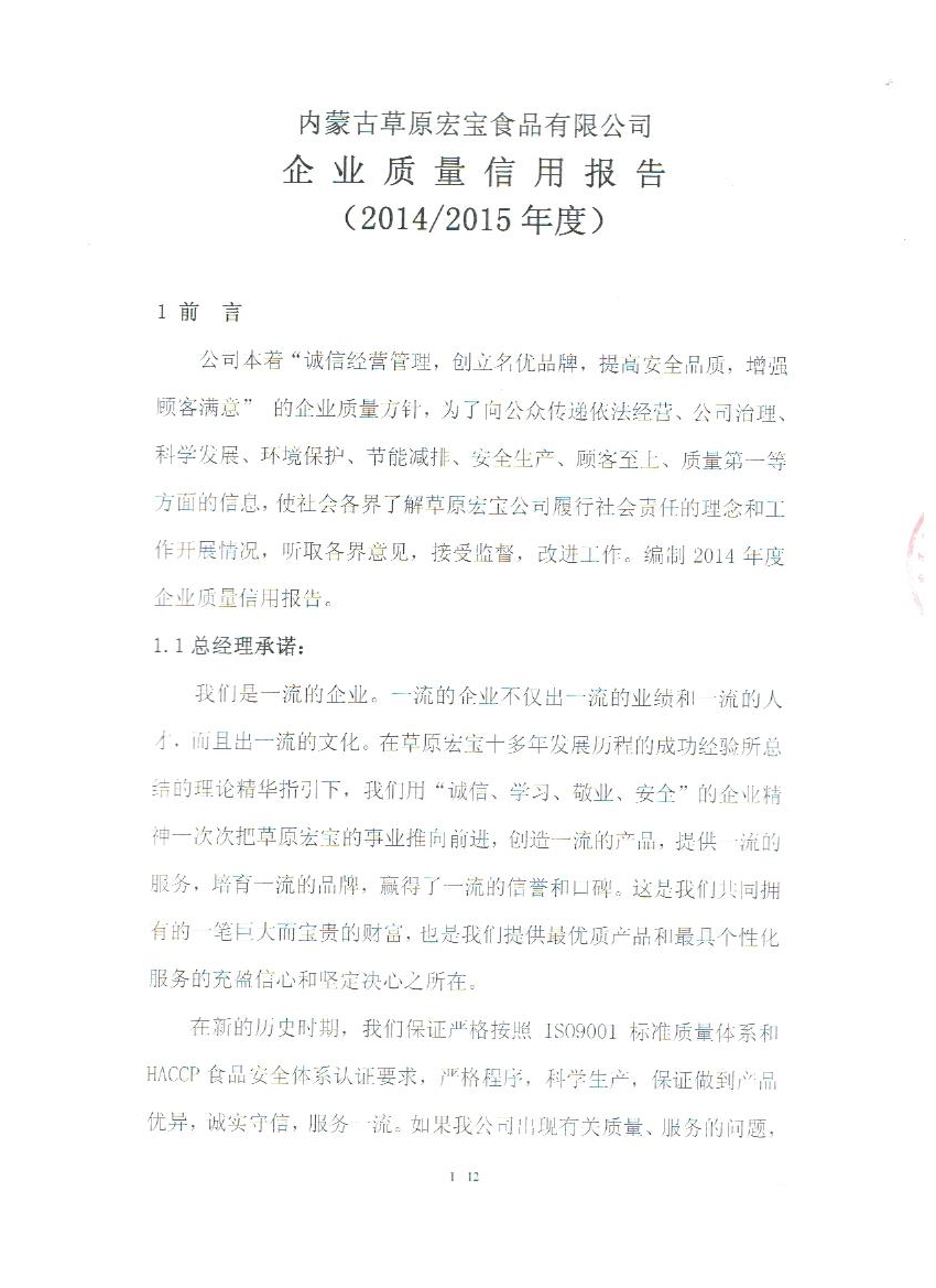 內蒙古草原宏寶食品有限公司企業質量信用報告